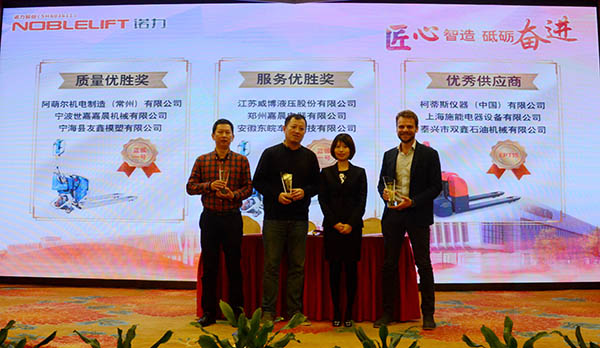 大会上,诺力步驾式车辆手艺部部长罗曼停止了重点产物保举,总司理助理、四期工场厂长陈黎升先容了四期智能工场扶植环境,品德办理部部长周伟宝就推销件品德办事任务提出请求。江苏威博液压股分无限公司等2家优异供给商代表在会上作了典范讲话,上海士商收支口无限公司等2家供给商在大会上签定年度推销和谈,柯蒂斯仪器(中国)等9家优异供给商遭到盛大惩处。